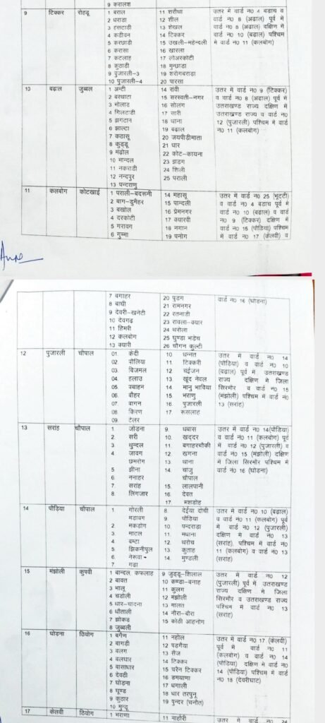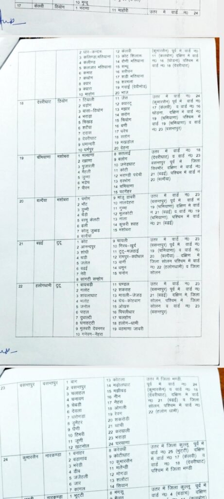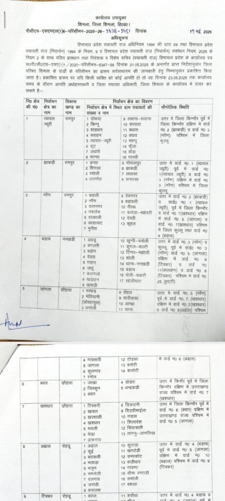 शिमला में “जिला परिषद” वार्डों के “परिसीमन” की अधिसूचना जारी कर दी गई है। अब जिला में कुल 25 वार्ड होंगे।