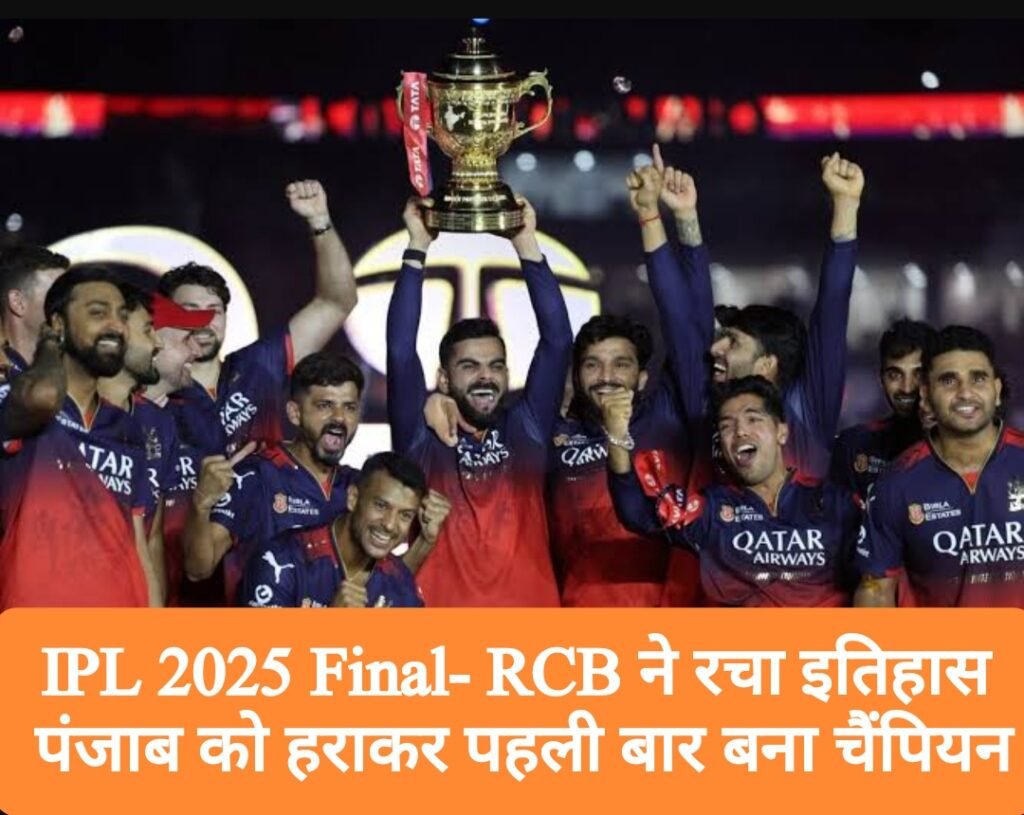17 सालों के लंबे इंतजार के बाद रॉयल चैलेंजर्स बेंगलुरु (RCB) ने आखिरकार अपना पहला आईपीएल खिताब जीत लिया। IPL 2025 के फाइनल में बेहद रोमांचक मुकाबले में पंजाब किंग्स को 6 रन से हराकर RCB ने इतिहास रच दिया।