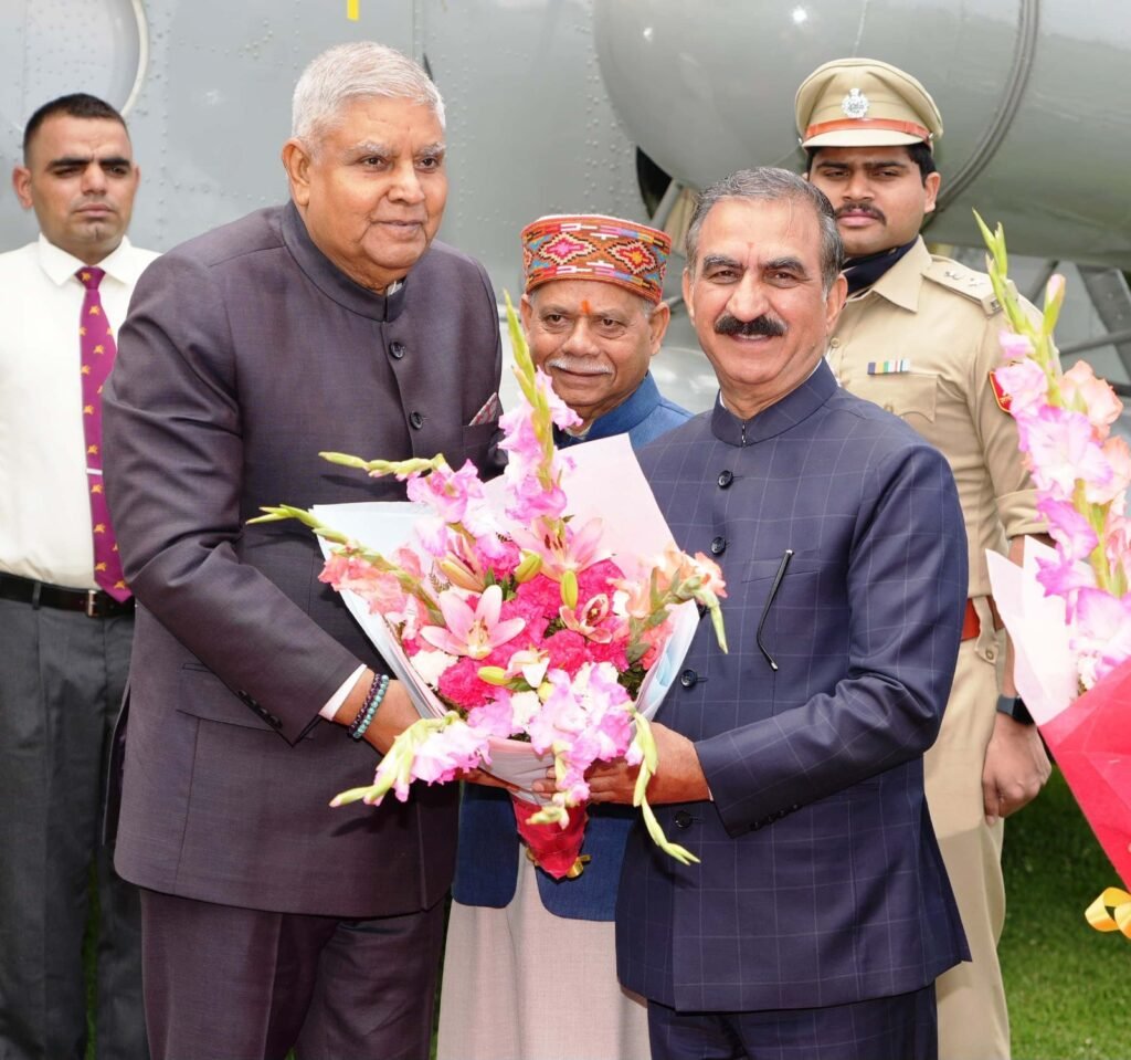 भारत के उप-राष्ट्रपति जगदीप धनखड़ का आज शिमला के अन्नाडेल हेलीपेड पहुंचने पर राज्यपाल शिव प्रताप शुक्ल और मुख्यमंत्री ठाकुर सुखविंद्र सिंह सुक्खू ने गरिमापूर्ण अभिनन्दन किया।