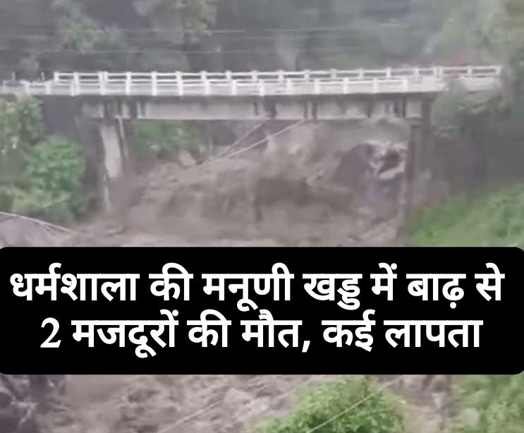धर्मशाला की मनूणी खड्ड में आई भयंकर बाढ़ से 2 मजदूरों की मौत, कई लापता, नदी नालों से दूर रहें