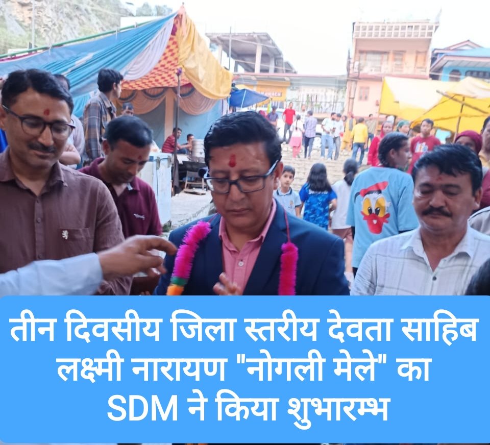 26 से 28 जून तक रामपुर के नोगली में आयोजित जिला स्तरीय देवता साहिब लक्ष्मी नारायण नोगली मेला का शुभारम्भ आज उप-मण्डलाधिकारी रामपुर हर्ष अमरेन्द्र सिंह ने किया ।