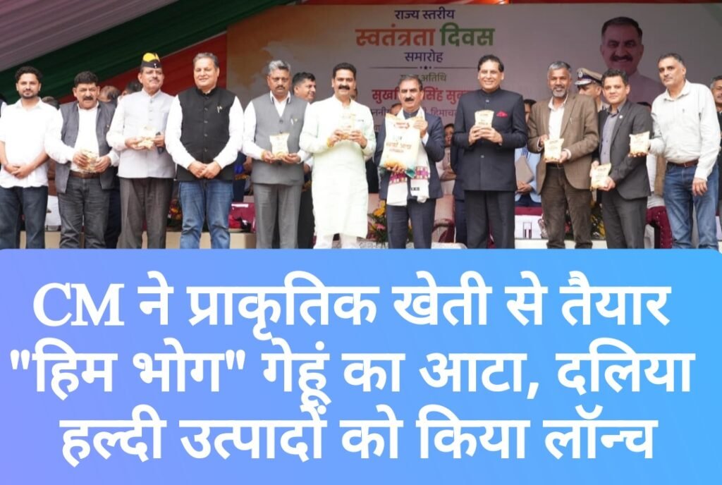 ज़िला मंडी के सरकाघाट में आज राज्य स्तरीय स्वतंत्रता दिवस समारोह में मुख्यमंत्री ठाकुर सुखविंद्र सिंह सुक्खू ने हिम भोग गेहूं का आटा, हिम भोग दलिया और हिम भोग हल्दी उत्पादों को लॉन्च किया।