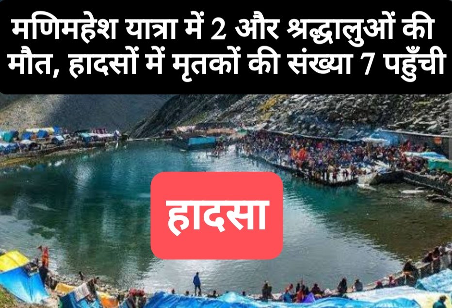 हिमाचल प्रदेश के चंबा जिले में चल रही पवित्र मणिमहेश यात्रा के दौरान रविवार सुबह बड़ा हादसा हो गया। हड़सर-मणिमहेश पैदल मार्ग पर सुंदरासी के पास भूस्खलन की चपेट में आने से दो श्रद्धालुओं की मौत हो गई। इस हादसे के बाद इस बार की यात्रा में जान गंवाने वाले श्रद्धालुओं की संख्या बढ़कर सात हो गई है।
