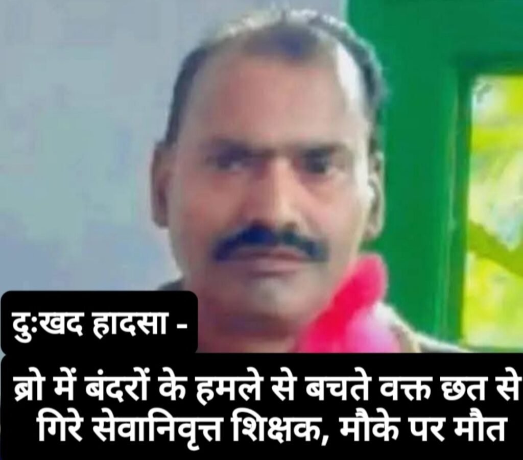 दुःखद- ब्रो में बंदरों के हमले से बचते वक्त छत से गिरे सेवानिवृत्त शिक्षक, मौके पर मौत