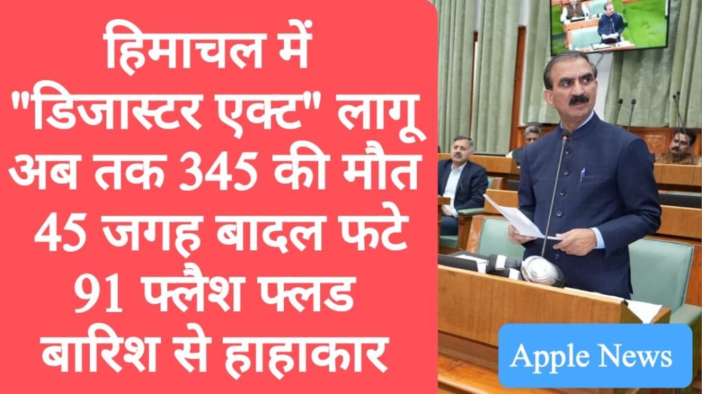 हिमाचल में "डिजास्टर एक्ट" लागू करने के आदेश, अब तक 345 की मौत, 45 जगह बादल फटे, 91 फ्लैश फ्लड, बारिश से हाहाकार