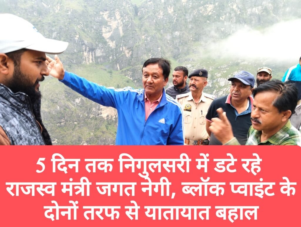 जनजातीय जिला किन्नौर के निगुलसरी में राष्ट्रीय उच्च मार्ग-05 के ब्लॉक प्वाइंट में हिमाचल प्रदेश सरकार में राजस्व, बागवानी, जनजातीय विकास व जन शिकायत निवारण मंत्री जगत सिंह नेगी के लगातार पांचवे दिन मौके पर डटे रहने के परिणाम आज समस्त लोगों के सामने हैं और नतीजतन यातायात पूर्ण रूप से बहाल कर दिया गया है।