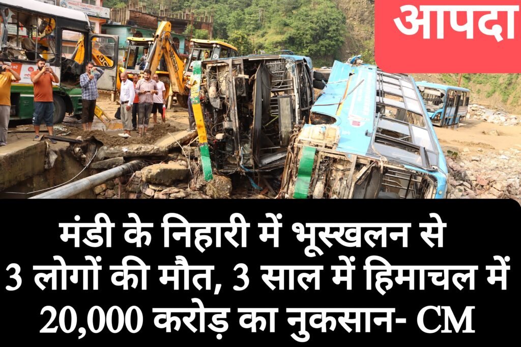 मुख्यमंत्री ठाकुर सुखविंद्र सिंह सुक्खू ने सोमवार की रात मंडी जिले के निहरी क्षेत्र में भारी वर्षा के कारण हुए भूस्खलन में तीन लोगों की मृत्यु पर गहरा शोक व्यक्त किया है।