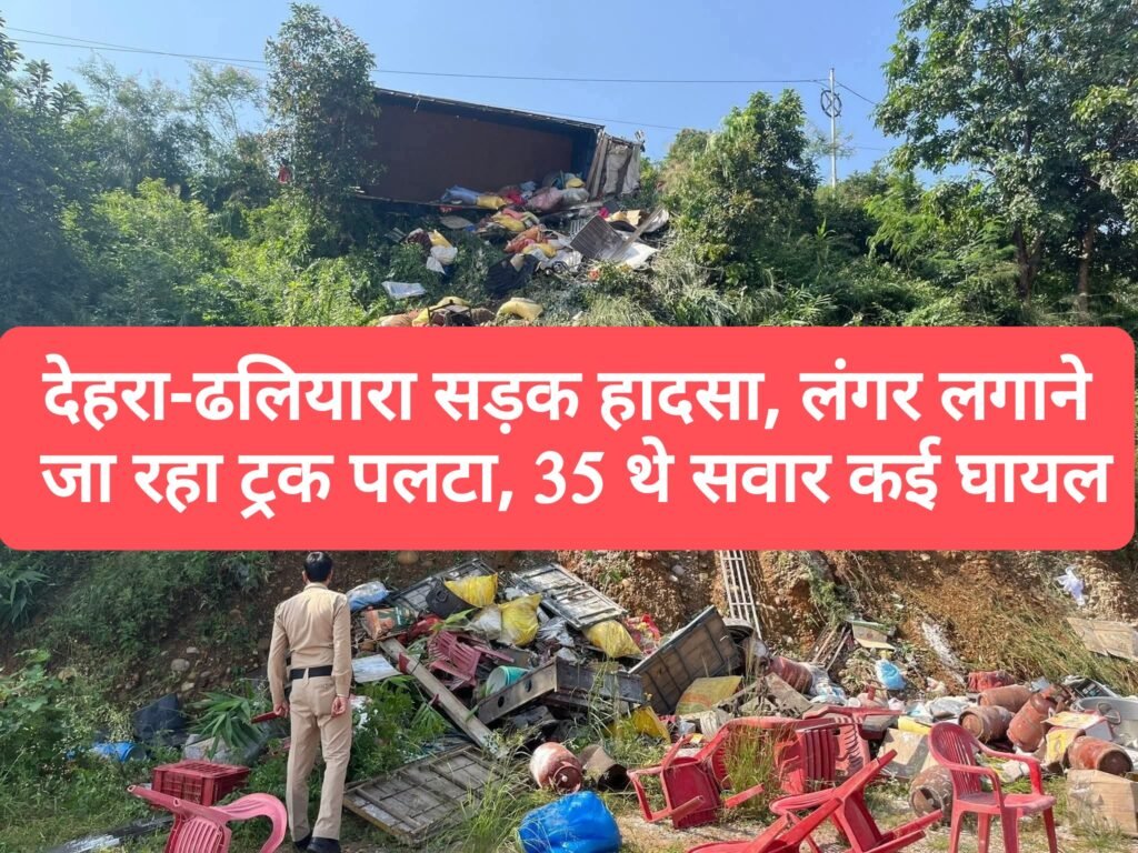 देहरा उपमंडल के ढलियारा मार्ग पर आज एक बड़ा सड़क हादसा घटित हुआ। हादसे में लंगर लगाने जा रहा एक ट्रक अनियंत्रित होकर पलट गया। ट्रक में लगभग 35 लोग सवार थे।