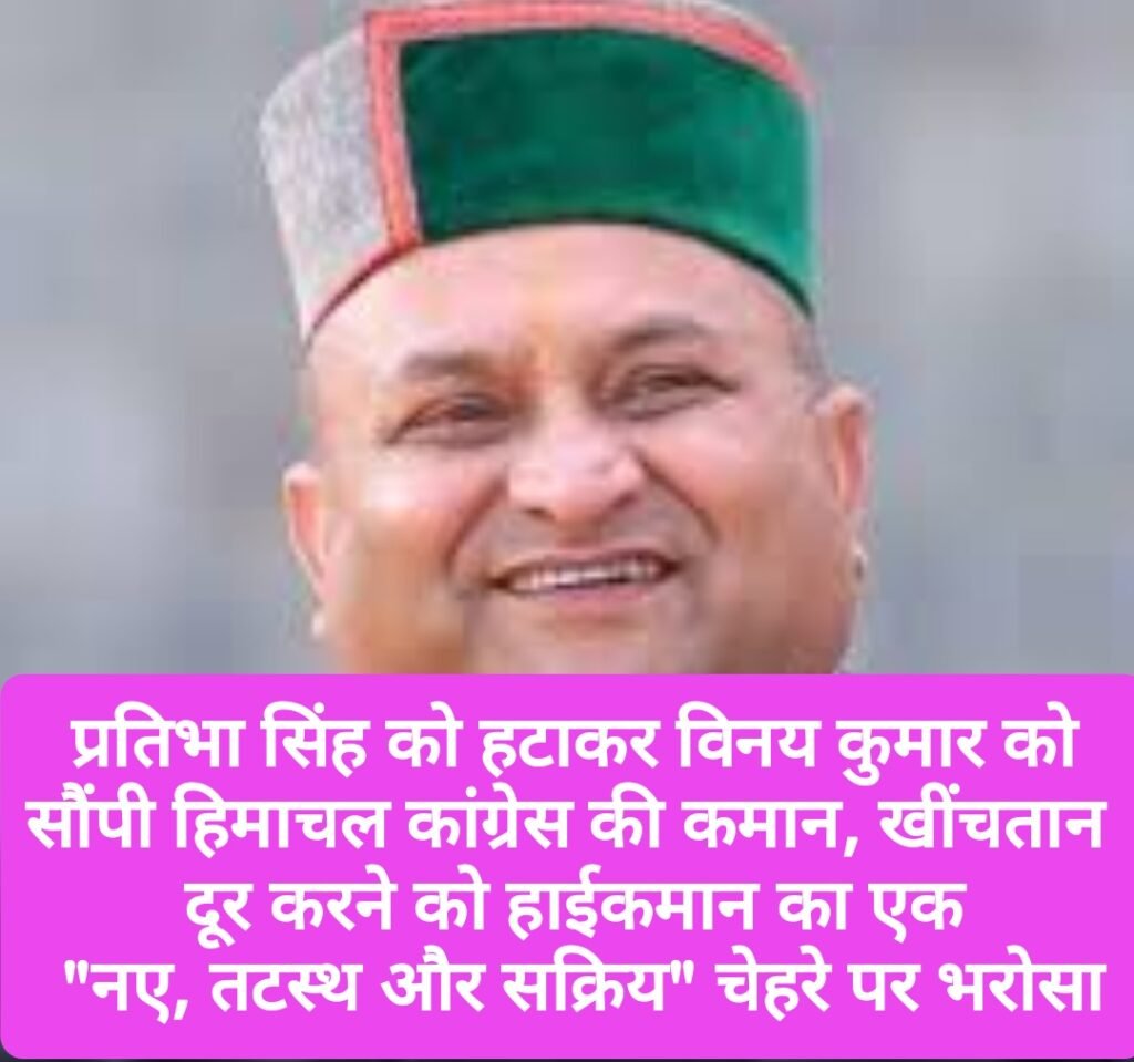 कुल मिलाकर, प्रतिभा सिंह को हटाकर विनय कुमार को अध्यक्ष बनाना कांग्रेस का एक स्पष्ट संदेश है—संगठन को युवा, सक्रिय, संतुलित और सरकार-समर्थक नेतृत्व की जरूरत है।