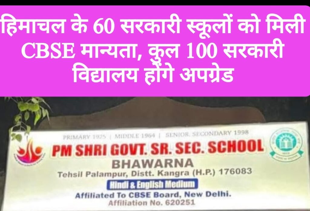 हिमाचल प्रदेश में सरकारी स्कूलों को राज्य शिक्षा बोर्ड से CBSE में ट्रांसफर करने की प्रक्रिया तेजी से आगे बढ़ रही है। 29 नवंबर 2025 तक उपलब्ध डाटा के अनुसार राज्य सरकार ने 100 सरकारी स्कूलों को CBSE पोर्टल पर अपलोड किया है, जिनमें से 60 स्कूलों को औपचारिक एफिलिएशन मिल चुकी है और इनके एफिलिएशन नंबर जारी हो गए हैं।