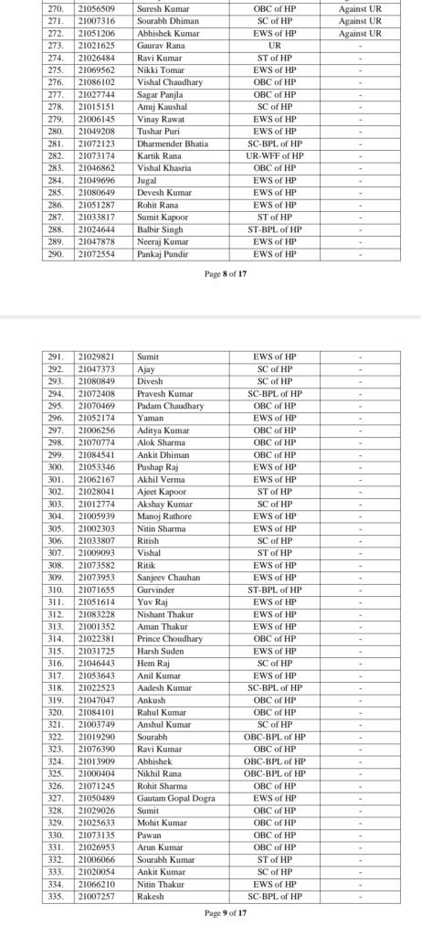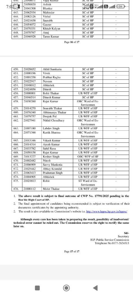 HPPSC द्वारा सिफारिश सूची जारी होने के बाद अब नियुक्ति संबंधी औपचारिकताएँ व जॉइनिंग आदेश हिमाचल पुलिस विभाग द्वारा जारी किए जाएंगे।