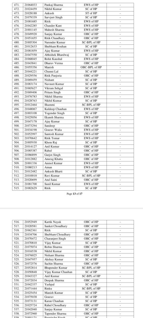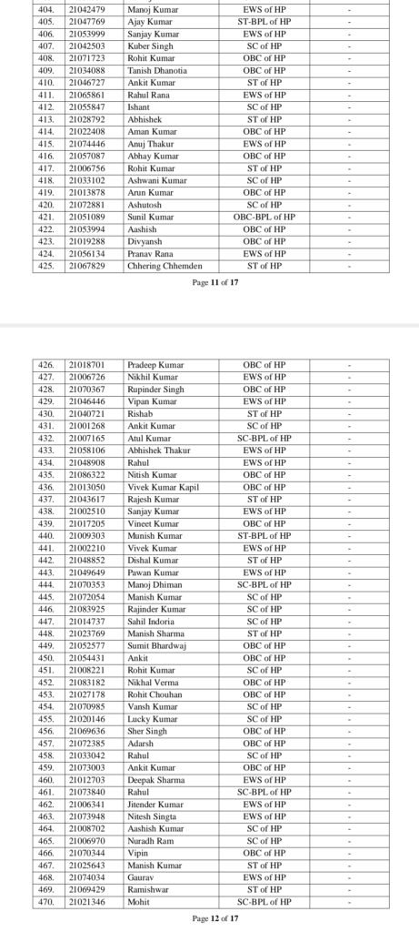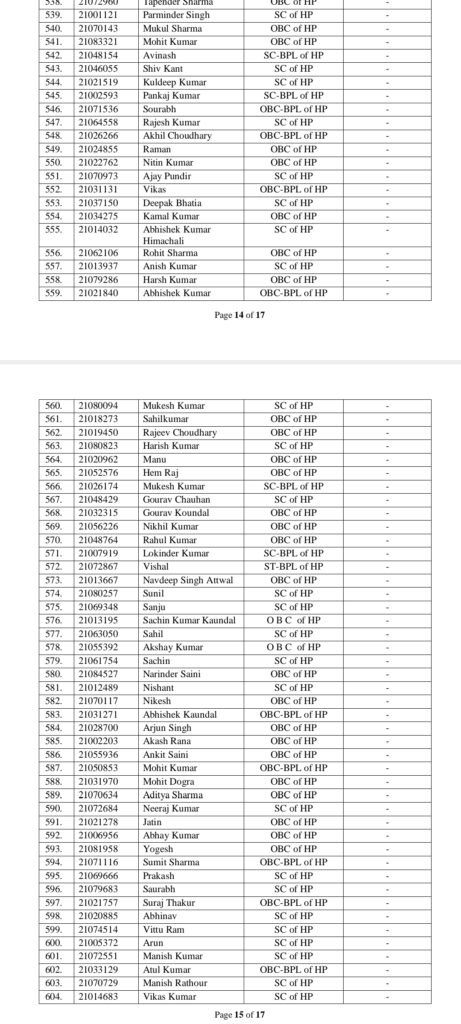 आयोग ने कुल 17 पृष्ठों की चयन सूची जारी की है, जिसमें क्रमवार सभी उम्मीदवारों के नाम, रोल नंबर एवं श्रेणी दर्ज हैं।
