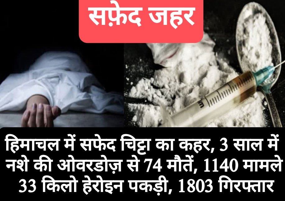 हिमाचल प्रदेश में नशे की ओवरडोज़ से होने वाली मौतों का आंकड़ा लगातार बढ़ रहा है। पिछले तीन वर्षों में 74 लोग नशे की अधिक मात्रा का शिकार होकर अपनी जान गंवा चुके हैं। इनमें 71 पुरुष और 3 महिलाएं शामिल हैं।