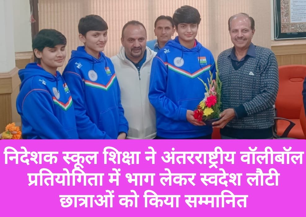 निदेशालय स्कूल शिक्षा, हिमाचल प्रदेश में अंतरराष्ट्रीय वॉलीबॉल प्रतियोगिता (अंडर-15) में भाग लेकर स्वदेश लौटी छात्राओं के सम्मान हेतु एक संक्षिप्त कार्यक्रम आयोजित किया गया।