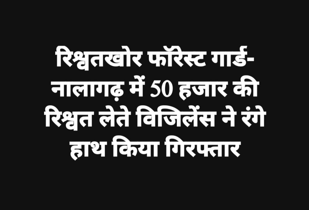 हिमाचल प्रदेश में भ्रष्टाचार के खिलाफ जारी सख्त अभियान के तहत विजिलेंस एवं एंटी करप्शन ब्यूरो ने नालागढ़ उपमंडल के पंजैहरा क्षेत्र में बड़ी कार्रवाई करते हुए एक फॉरेस्ट गार्ड को 50 हजार रुपये की रिश्वत लेते हुए रंगे हाथ गिरफ्तार किया है। यह कार्रवाई सोमवार शाम को की गई, जिससे क्षेत्र में हड़कंप मच गया।