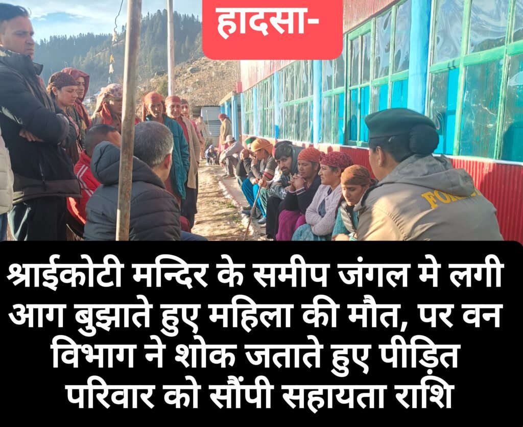 श्राईकोटी मन्दिर के समीप जंगल मे लगी आग बुझाते हुए महिला की मौत, पर वन विभाग ने शोक जताते हुए पीड़ित परिवार को सौंपी सहायता राशि