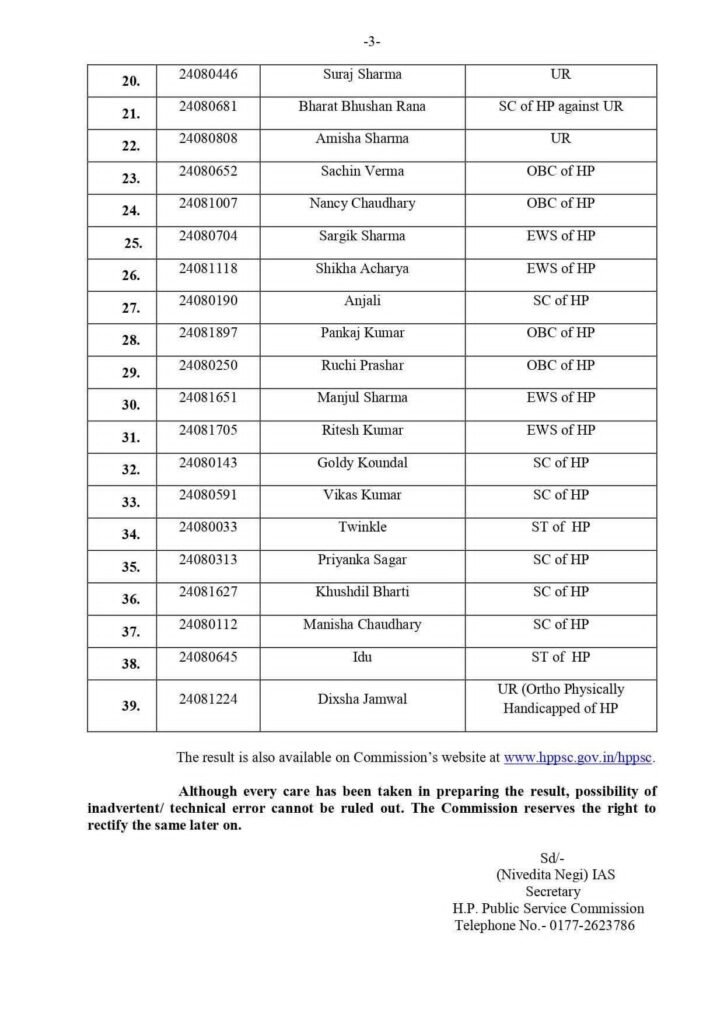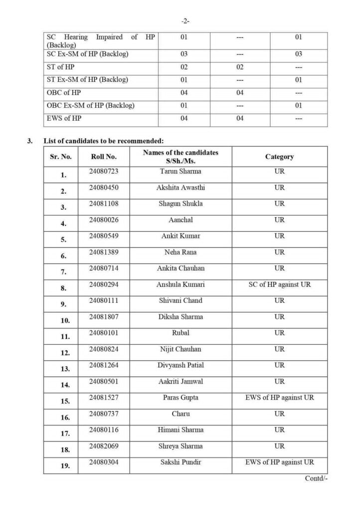SC वर्ग के सभी 6 पदों पर अभ्यर्थियों की सिफारिश की गई है।