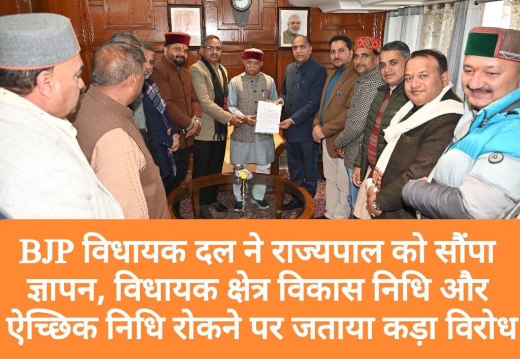 BJP विधायक दल ने राज्यपाल को सौंपा ज्ञापन, विधायक क्षेत्र विकास निधि और ऐच्छिक निधि रोकने पर जताया कड़ा विरोध