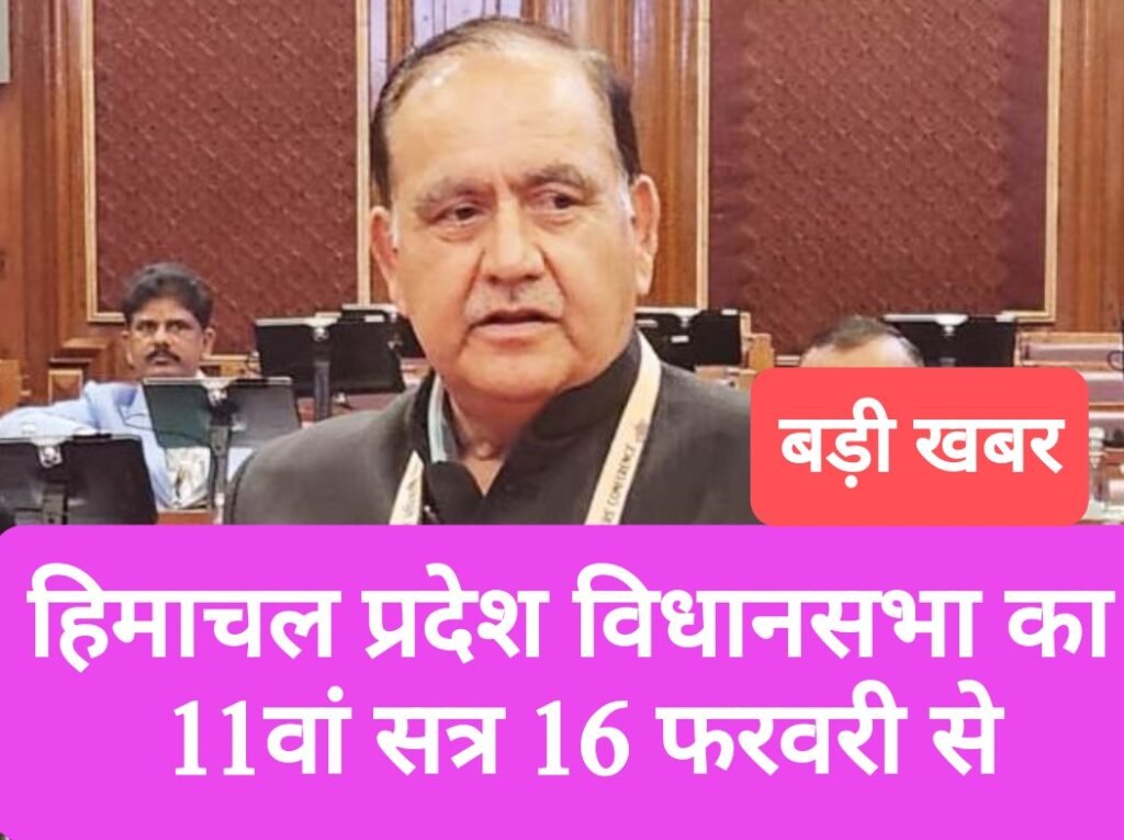 हिमाचल प्रदेश विधानसभा का 11वां सत्र 16 फरवरी से