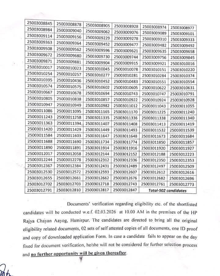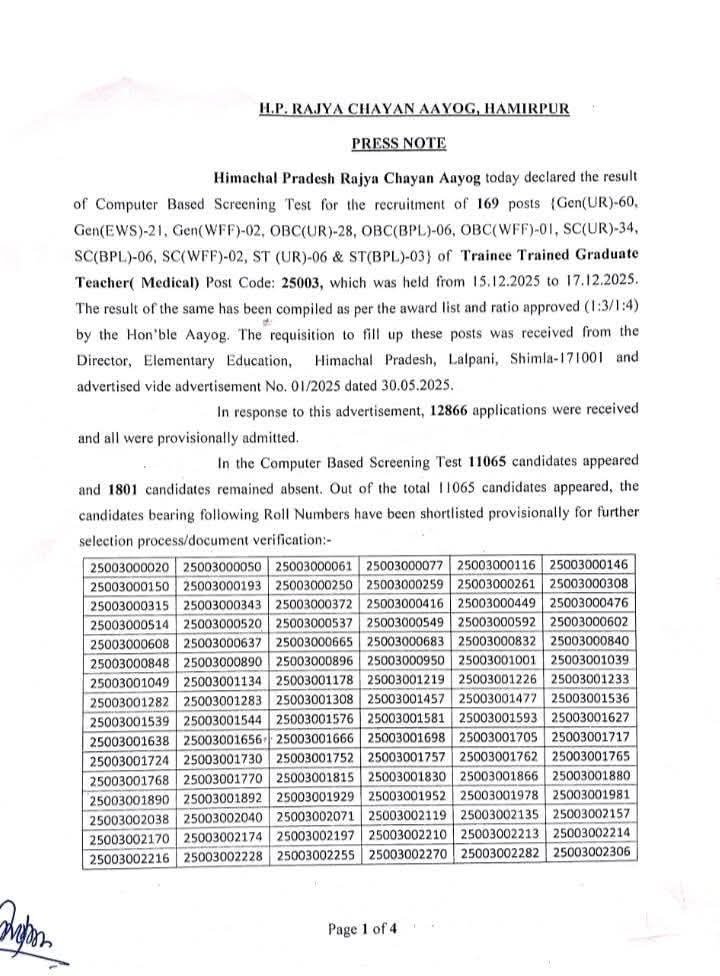 आयोग द्वारा स्वीकृत अनुपात (1:3/1:4) के अनुसार परिणाम तैयार किया गया है और चयनित अभ्यर्थियों को आगे की चयन प्रक्रिया तथा दस्तावेज सत्यापन के लिए अस्थायी रूप से शॉर्टलिस्ट किया गया है।