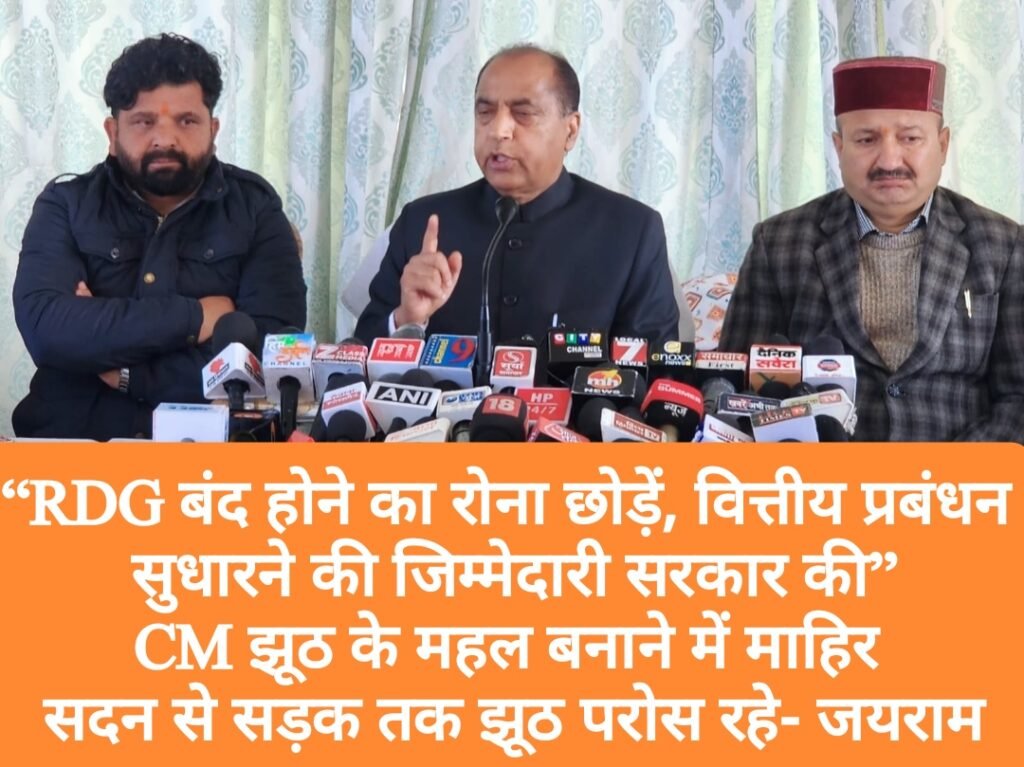 “RDG बंद होने का रोना छोड़ें, वित्तीय प्रबंधन सुधारने की जिम्मेदारी सरकार की”, CM झूठ के महल बनाने में माहिर, सदन से सड़क तक झूठ परोस रहे- जयराम