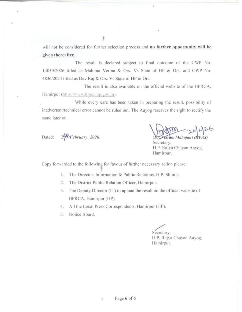 आयोग ने बताया कि निर्धारित अनुपात के अनुसार अभ्यर्थियों को आगामी चयन प्रक्रिया एवं दस्तावेज सत्यापन के लिए अस्थायी रूप से शॉर्टलिस्ट किया गया है। विस्तृत परिणाम आयोग की आधिकारिक वेबसाइट पर उपलब्ध है।