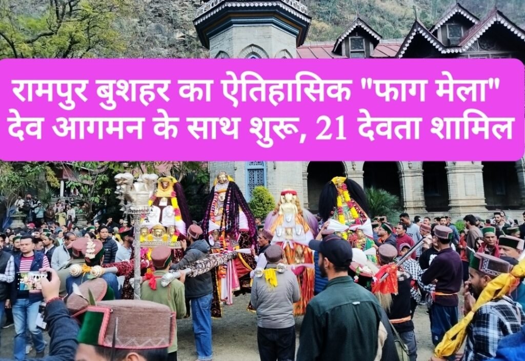शिमला जिला के रामपुर बुशहर में आयोजित होने वाला ऐतिहासिक फाग मेला आज देवागमन के साथ शुरू हो जाएगा। 8 मार्च तक चलने वाला यह चार दिवसीय उत्सव वसंत ऋतु के आगमन और हिंदू नववर्ष के स्वागत के उपलक्ष्य में बड़े हर्षोल्लास के साथ मनाया जाता है।