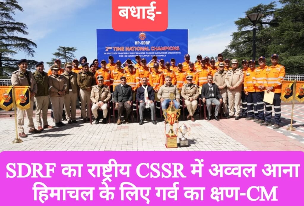 SDRF का राष्ट्रीय CSSR प्रतियोगिता में अव्वल आना हिमाचल के लिए गर्व का क्षण- मुख्यमंत्री