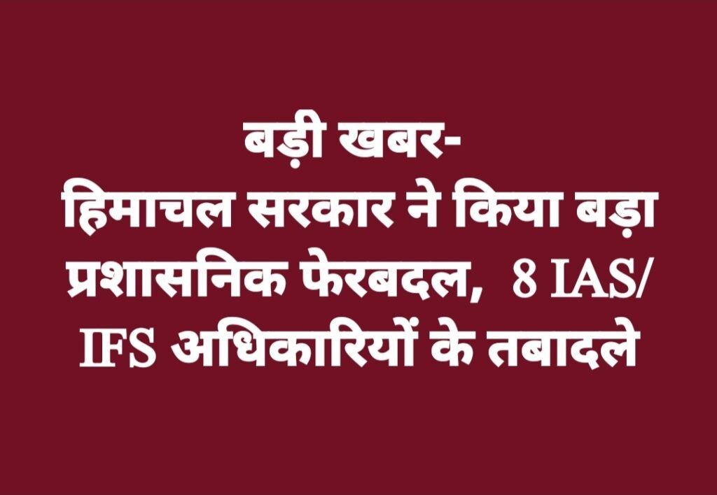 हिमाचल प्रदेश में बजट सत्र के बीच बड़े प्रशासनिक फेरबदल करते हुए सरकार ने 8 IAS/IFS अधिकारियों के तबादले कर दिए हैं। इस निर्णय को प्रशासनिक कार्यकुशलता बढ़ाने और विभागीय समन्वय मजबूत करने के तौर पर देखा जा रहा है।
