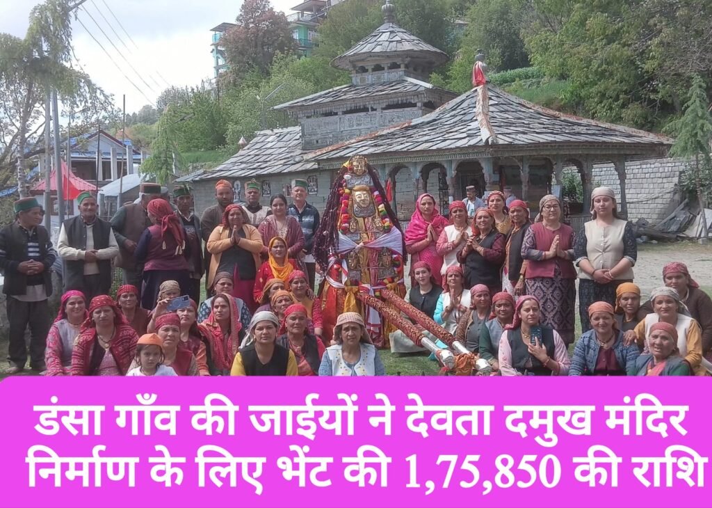 शनिवार को डंसा गाँव की जाईयों द्वारा देवता साहिब दमुख जी के नव मंदिर निर्माण के लिए ₹1,75,850 की श्रद्धा राशि भेंट की गई। यह राशि मंदिर निर्माण के साथ-साथ माता गुशेणी मंदिर के निर्माण कार्य में भी उपयोग की जाएगी।