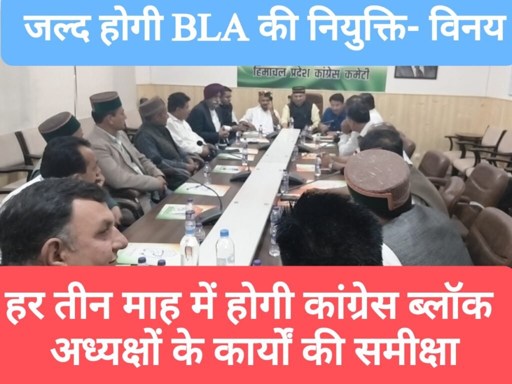 उन्होंने कहा है कि हर तीन माह में उनके कार्यो की समीक्षा की जाएगी और बेहतर कार्य करने वाले अध्यक्षों व अन्य पदाधिकारियों को संगठन में विशेष प्रोत्साहन दिया जाएगा। प्रदेश कांग्रेस मुख्यालय राजीव भवन में जिला शिमला, सोलन,सिरमौर व किन्नौर के ब्लॉक अध्यक्षों की पहली औपचारिक बैठक की अध्यक्षता करते हुए विनय कुमार ने कहा कि उनके क्षेत्रों में पार्टी के साथ अधिक से अधिक लोगों को जोड़ने व पार्टी के प्रचार प्रसार की बहुत बड़ी जिम्मेदारी है।