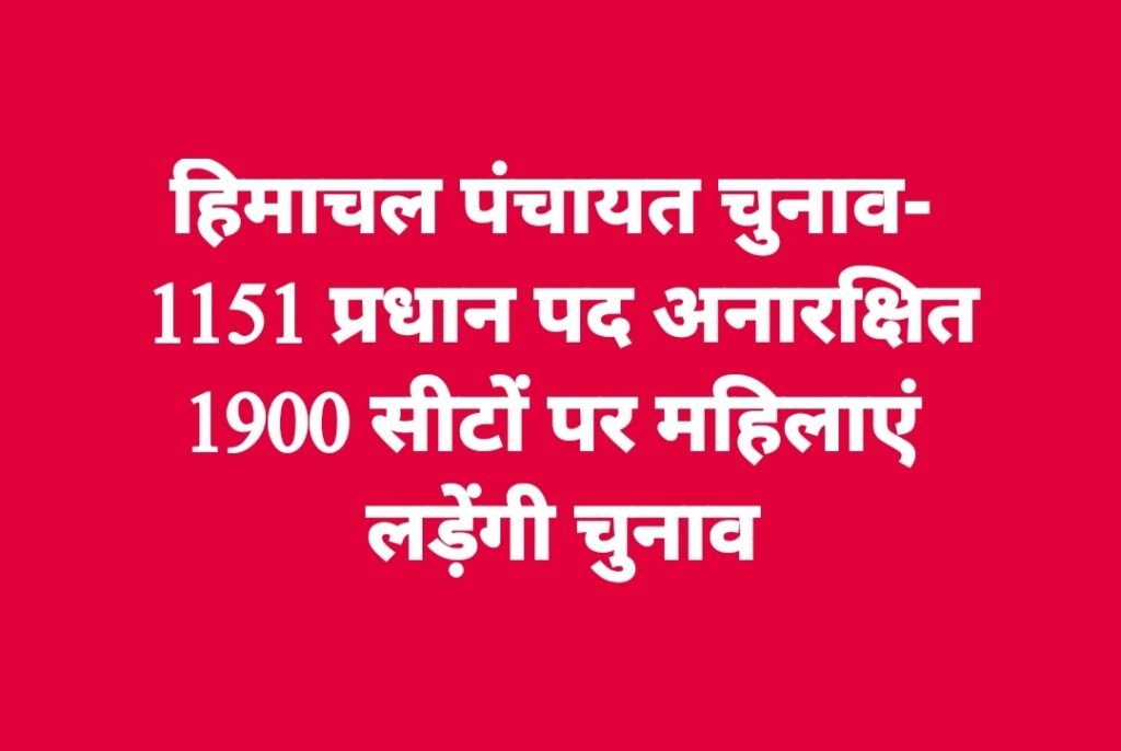 हिमाचल प्रदेश में पंचायत चुनावों की घोषणा के साथ ही आरक्षण रोस्टर की तस्वीर पूरी तरह साफ हो गई है। राज्य की 3758 ग्राम पंचायतों में प्रधान पद के लिए चुनाव होंगे, जिनमें बड़ी संख्या में सीटें महिलाओं के लिए आरक्षित की गई हैं। इस बार कुल 1900 प्रधान पदों पर महिला उम्मीदवार चुनाव मैदान में उतरेंगी, जबकि 1151 पद अनारक्षित रखे गए हैं।